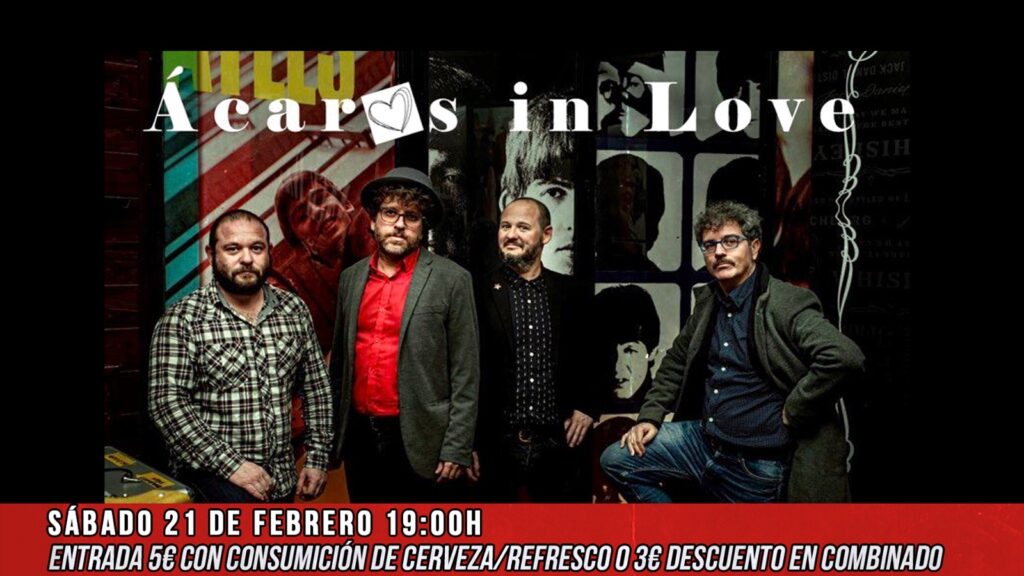 21/02/2026 @ 19:00 – Precio 5€ Ácaros in Love Versiones de los grandes éxitos de la música nacional e internacional desde los 80 hasta ahora. * La hora de comienzo es aproximada. *No está permitida la entrada a menores de edad. *La entrada se compra en taquilla e incluye una consumición de Alhambra Especial o refresco.